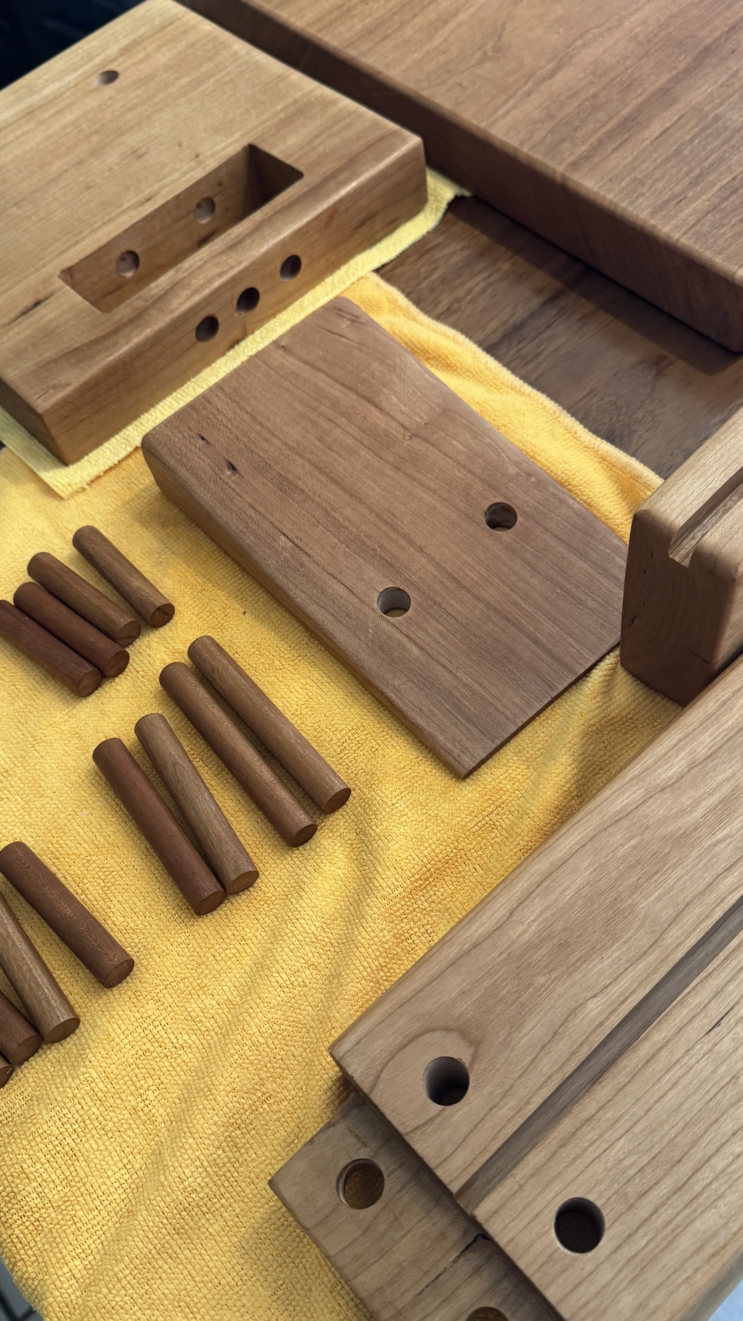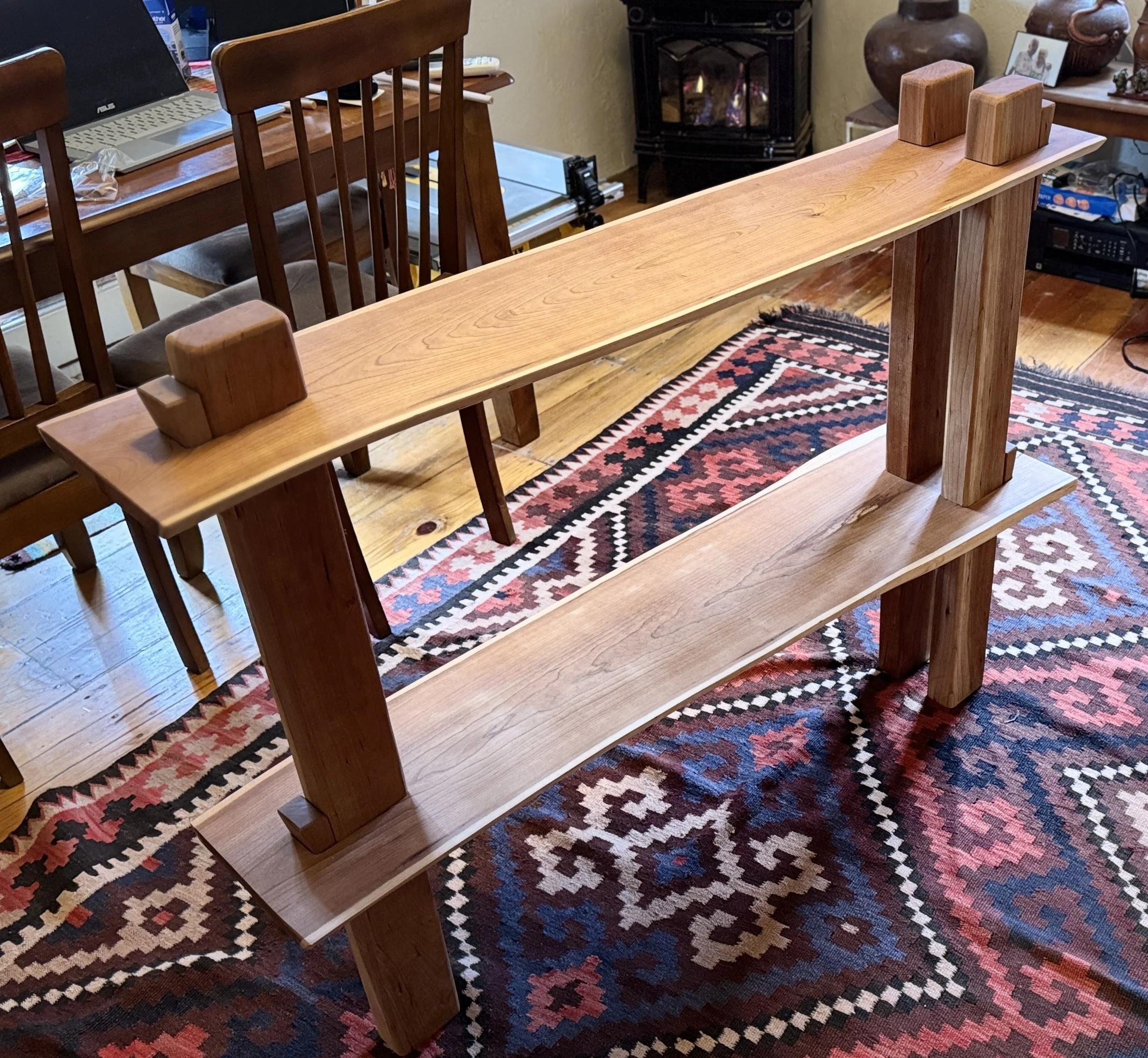 Recently a client hired me to design and build several pieces for her new home. I designed each piece to be easily assembled so that it could be shipped and then reassembled. All pieces were made of cherry to match existing pieces in the living area. Below are a few details from the 4 projects I completed.